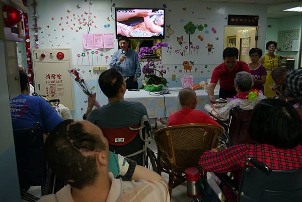 下午三點半,聖光診所附設聖光護理之家在六樓康樂廳舉辦歡渡母親節暨慶生活動,主持人劉志祥老師揭開序幕。
