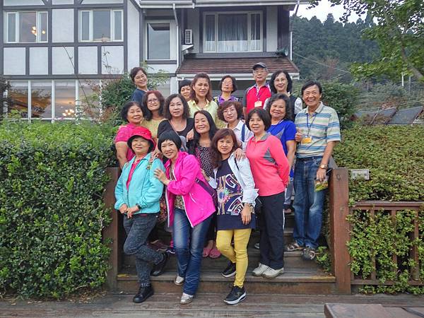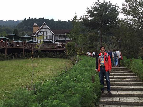 中午,在新竹縣泥磚屋用餐,享用傳統客家菜。然後,換搭中巴前往山上人家森林農場,是一處人間仙境,海拔1200公尺,眼前所看到的是德式風格的主建築物,有深褐色的斜瓦,加上淡淡土黃色的大煙囪,配上白色的牆壁與落地的透明窗,在青山圍繞中,更是鮮明美麗,讓人一看就很舒服。前庭有一大片綠油油的草地,吸引不少遊客進入拍照。