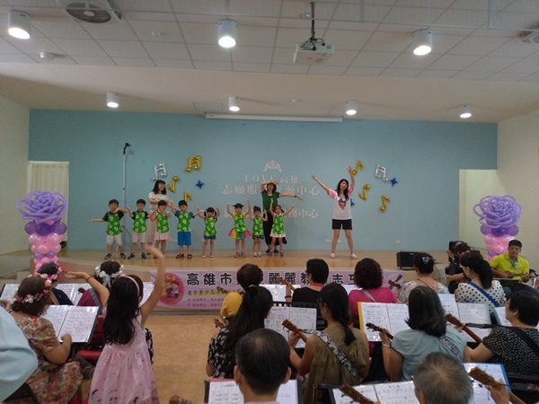 下午兩點,由司儀林辰騰同學揭開序幕,全場坐滿觀眾,坐無虛席。值得一提的是一場由6歲到86歲100位烏克麗麗志工攜手合作演出的音樂劇。