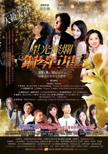 當晚的群星聚會,是台灣樂史在數十寒暑的粹煉所呈現最繁盛美麗的榮景。這些桂冠巨星,傳承偉大俄派瑙莫夫演奏風格氣壯山河的葉孟儒,承襲美國茱莉亞音樂院榮耀光輝傳統,氣質明麗、琴藝令人驚艷的鍾曉青,承襲德國堅實深厚,超凡琴藝的范姜毅,以及英倫唯美浪漫,演奏深遂具內涵的美麗鋼琴女詩人維諾妮卡,這是南部首見的樂壇盛會,也是真正音樂的台灣之光。