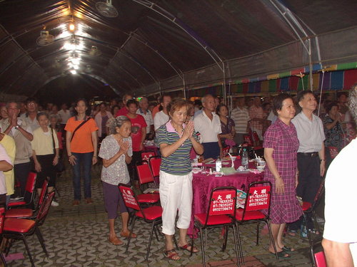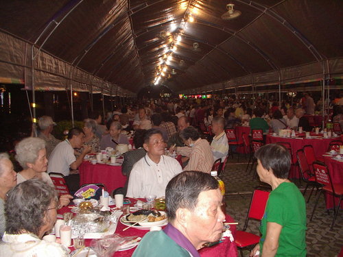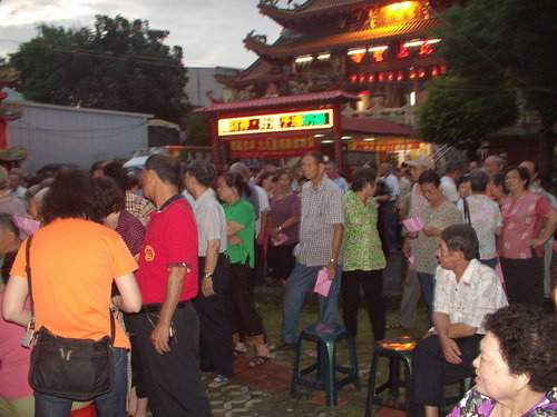 十月二日晚間六點,高雄港口慈濟宮在廣場前舉辦慶祝天上聖母得道昇天紀念暨久久重陽敬老聯歡晚會,邀請附近文昌、建軍、正仁等三里65歲以上老人参加,席開85桌,長者報到後,由十幾位慈聯社會福利基金會志工帶領入坐,現場熱鬧滾滾。