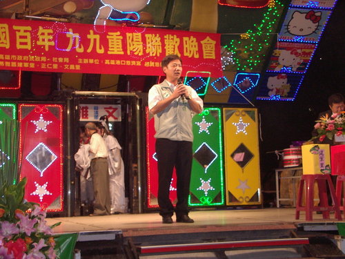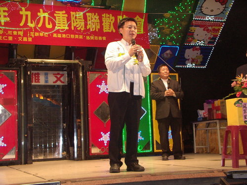 晚會七點,由節目主持人揭開序幕,慈濟宮主委林秀珠致詞說:「舉辦久久重陽敬老聯歡晚會,是要將這份敬老之情,傳入長者心中,社會有愛,處處飛揚。」