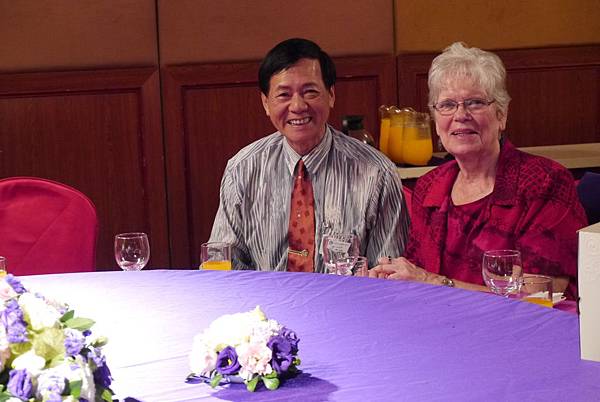 墨寶捲軸給Ted,讓他大喜過望,接著Ted夫人Rita贈送一束花