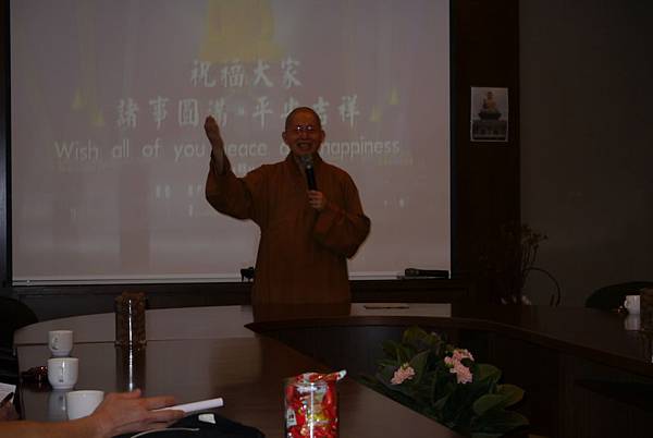 首先,我們聽簡報,主持的女師父風趣的談話與把「阿彌陀佛」套用《兩隻老虎》、《Jingle Bells 》、《you are my sunshine》、《阿里郎》、《何日君再來》唱出,引來陣陣笑聲。